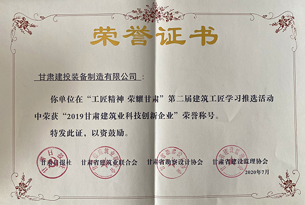 據悉,第二屆“建筑工匠”學習推選活動暨甘肅建筑行業創新發展論壇由甘肅日報社、甘肅省建筑業聯合會、甘肅省勘察設計協會、甘肅省建設監理協會共同主辦,蘭州理工大學提供學術支持。經過企業自主申報、行業協會推薦、主辦單位審核、專家評審等環節,最終確定了10家“2019甘肅十佳卓越建筑企業”、10家“2019甘肅十佳設計研究院”、5家“2019甘肅建筑業科技創新企業”、5名“2019甘肅工程建造大師”、5名“2019甘肅建筑行業杰出工匠”。其中,甘肅建投裝備公司獲得“建筑行業科技創新企業”榮譽稱號。