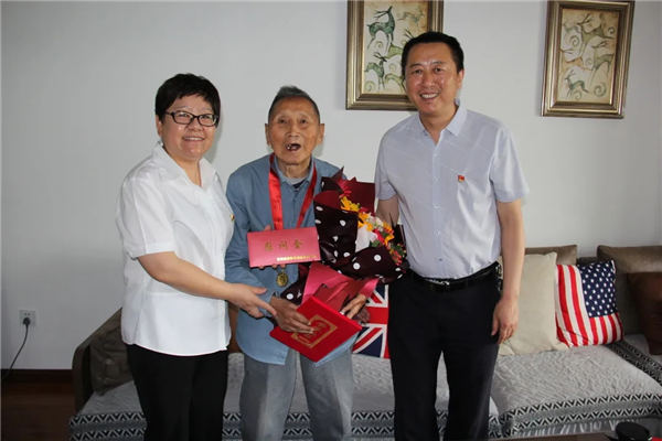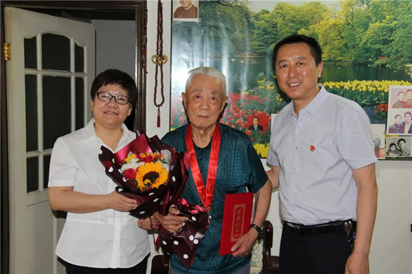 在建黨100周年即將到來之際,黨委副書記、工會主席王宏、紀委書記蔡高華與相關部室負責人于6月28日來到老黨員張洪浩、史守田的家中,為他們頒發“光榮在黨50年”紀念章,向他們轉達黨中央、集團公司和裝備公司黨委的關懷和祝福,向他們致以誠摯問候和崇高敬意。