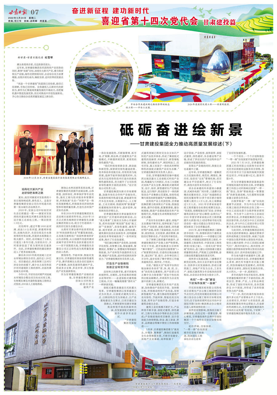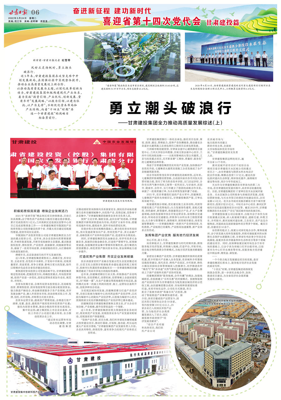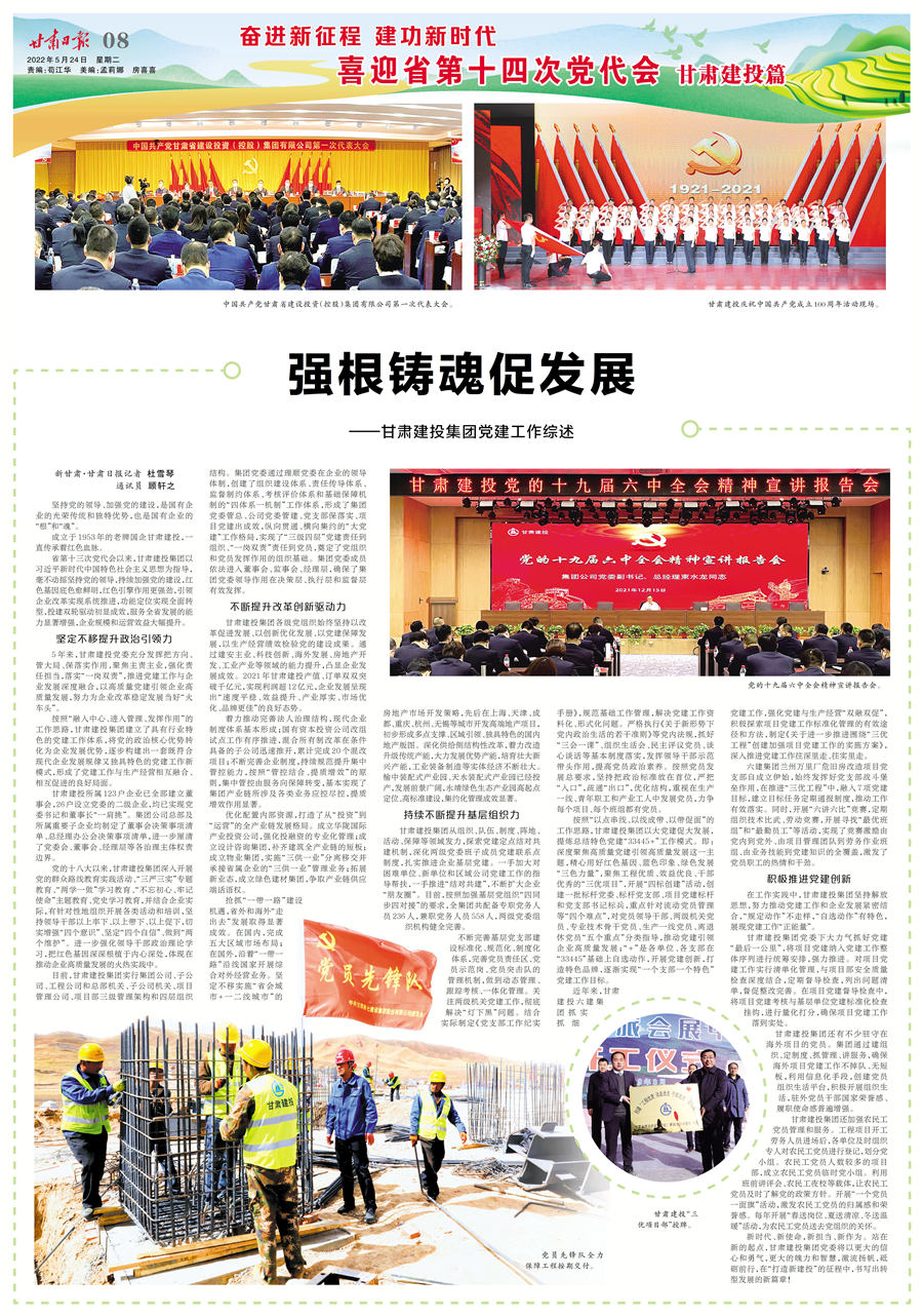《甘肅日?qǐng)?bào)》:奮進(jìn)新征程 建功新時(shí)代——喜迎省第十四次黨代會(huì)?甘肅建投篇