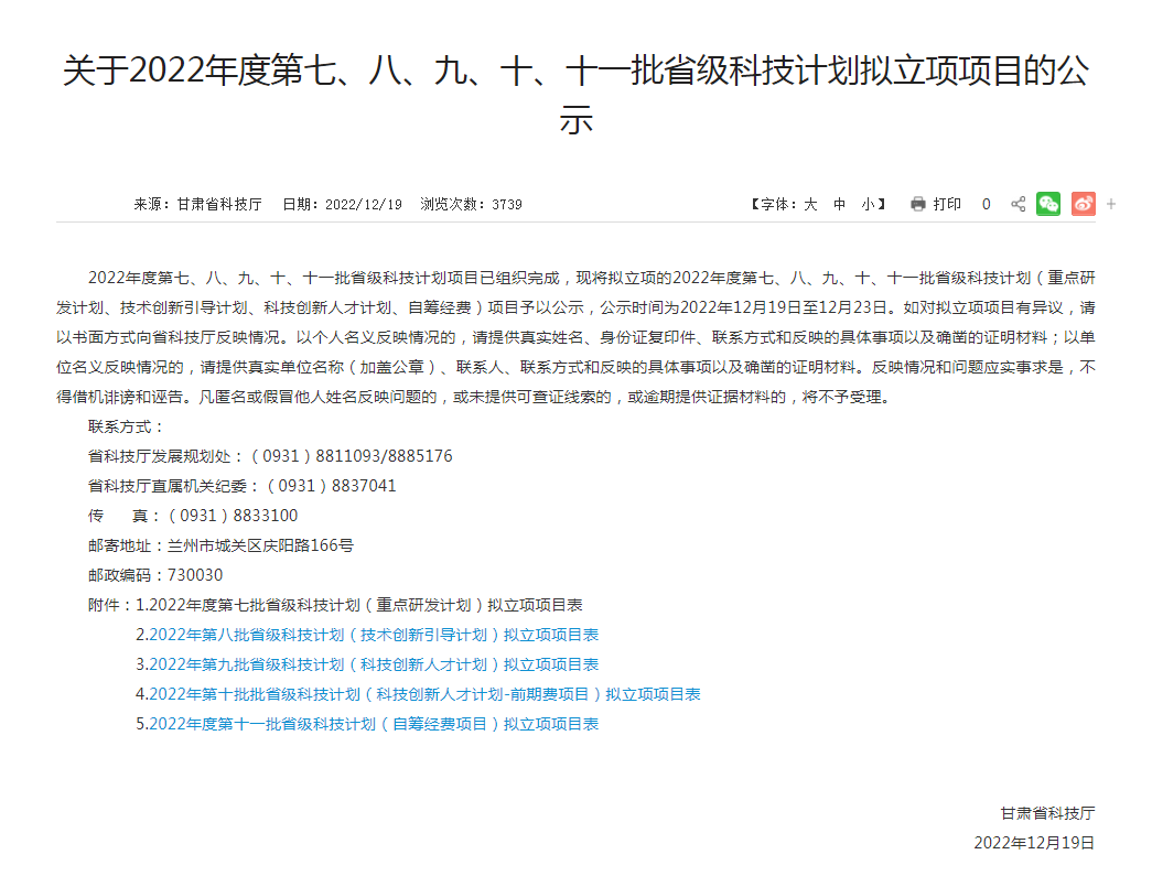 近日,甘肅省科學(xué)技術(shù)廳發(fā)布《關(guān)于2022年度第七、八、九、十、十一批省級(jí)科技計(jì)劃擬立項(xiàng)項(xiàng)目的公示》,甘肅建投裝備公司申報(bào)的甘肅建投裝備產(chǎn)業(yè)技術(shù)研究院建設(shè)項(xiàng)目獲批立項(xiàng),并獲批政府補(bǔ)助資金20萬(wàn)元,這是裝備公司繼2021年獲批省級(jí)重點(diǎn)研發(fā)項(xiàng)目后又一次獲批省科技廳科技計(jì)劃項(xiàng)目。