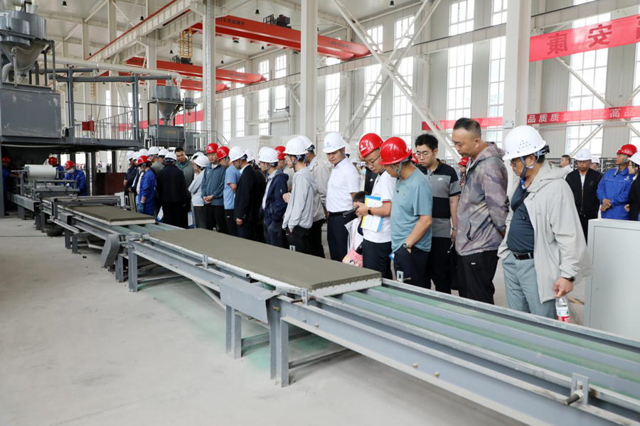 會前,與會人員前往康樂縣工業集中區甘肅格賽克藍川新材料公司進行了現場觀摩,甘肅省建設設計咨詢集團有限公司副總工程師王躍軍結合現場的生產工藝、產品性能及施工工序圍繞《JT免拆復合保溫模板系統》圖集進行了詳細講解。