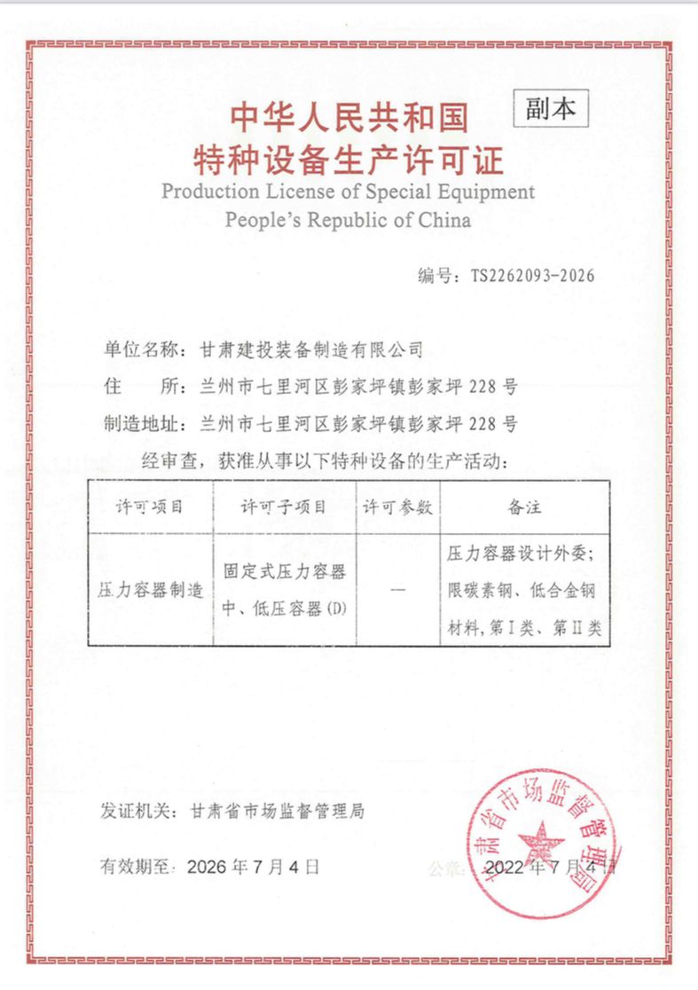 裝備公司在對省十四次黨代會精神集中學(xué)習(xí)的基礎(chǔ)上,圍繞“強科技、強工業(yè)、強省會、強縣域”的“四強”行動戰(zhàn)略,立足做強第一產(chǎn)業(yè)這一發(fā)展目標(biāo),在特種設(shè)備資質(zhì)取證工作上持續(xù)發(fā)力,于近日成功取得特種設(shè)備制造許可證書,該資質(zhì)可生產(chǎn)固定式壓力容器中、低壓容器(D)級產(chǎn)品,壓力范圍0.1MPa≤P<10MPa,包括碳素鋼、低合金鋼材料第I類、第II類產(chǎn)品。