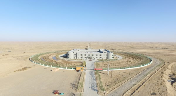 作為老牌建筑施工單位,搞建筑本來是很簡單的事,但在沙漠里搞建筑卻不是一件簡單的。除了沒水、沒電、遠離城區外,沙漠里夏天最熱可達40多度,地面溫度更是高達50多度。遇到風沙天氣時,七八級的大風夾雜著沙子將臉打的生疼,施工現場地面更是堆積著厚厚一層沙子,嚴重影響施工作業。條件雖然艱苦,但基地大樓的建設工期不能耽誤。沒電用發電機、沒水從附近拉,所有施工材料都從遠在幾十里外的城區運,為了保證在冬季到來前主體封頂,施工高峰時一次進場200多人同時作業。經過近一年的建設,2016年8月底,這座建筑面積7500多平米的大樓完成全部施工及內部裝修工作,并正式投入使用。這座城堡形的建筑僅有兩層,其設計充分考慮沙漠環境及氣候因素,與沙漠景觀完美融合,實用的同時,不失建筑美。建成后的沙漠基地綜合樓主要用于科研、試驗、辦公等用途,同時保證現場工作人員的吃住等生活需求。作為環境改善和保護的試驗基地,該建筑充分利用太陽能等新能源,充分體現綠色低碳環保。