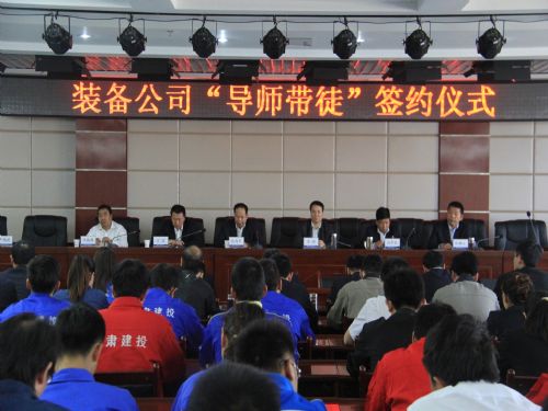 2014年9月25日,甘肅甘肅建投裝備公司在十樓會議室隆重舉行2014年度“導師帶徒”簽約儀式。裝備公司總經理、黨委書記、工會主席、總工程師、生產總監、財務總監出席了此次會議。此次活動由裝備公司團委舉辦,主要目的是通過簽訂導師帶徒協議,引導青年員工在崗位上學習,幫助青年在崗位上成才,提高青年員工的整體素質,加快青年人才的培養,不斷提升公司整體管理水平。今天的“導師帶徒”簽字協議活動共有四項議程。