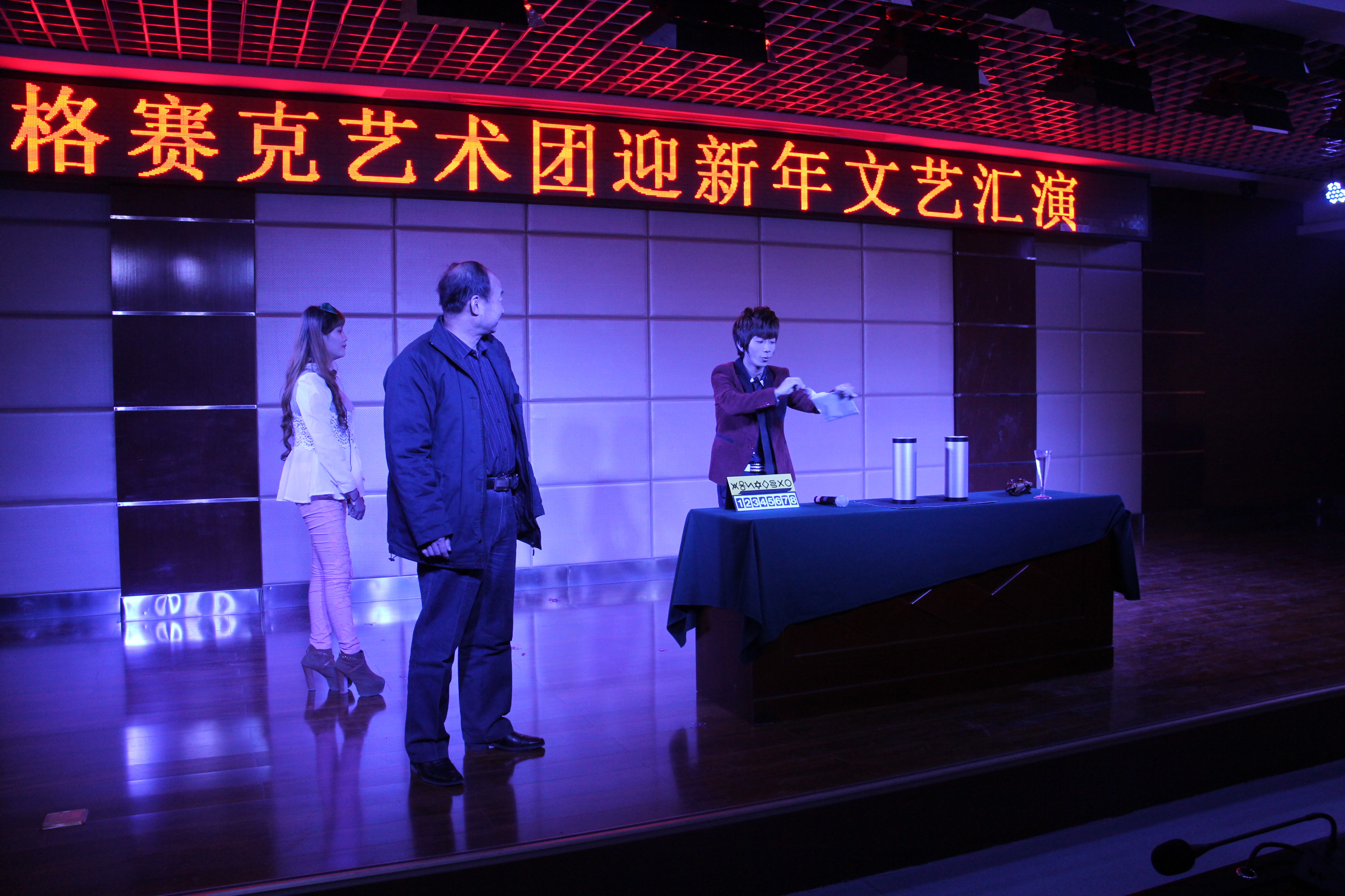 據(jù)了解,雖然本次晚會取消了領(lǐng)導(dǎo)講話、宴席和華麗的舞臺布置,但是格賽克藝術(shù)團(tuán)表演的節(jié)目還是形式多樣,別出心裁,充滿了新意,尤其是原創(chuàng)節(jié)目得到了大家的好評。節(jié)目里融合了民族與時尚的元素,可謂異彩紛呈。在雙截棍《棍舞乾坤》絢麗奪目的舞臺表演讓觀眾鴉雀無聲到連聲叫好,緊接著《魔術(shù)》將臺下觀眾帶入了奇幻境地,不可思議的變!變!變!讓觀眾不停鼓掌;原創(chuàng)現(xiàn)代舞《神曲串燒》更是喚起了人們對青春的向往和對美好未來的憧憬;由樂隊表演帶來的《活著》將現(xiàn)場的氣氛推向了高潮,唱出了建投人共建和諧社會的心聲;原創(chuàng)小品表演給大家意想不到的驚喜,臺下觀眾不停拍手叫好。最后文藝匯演在激昂的大合唱《明天會更好》中圓滿落幕。