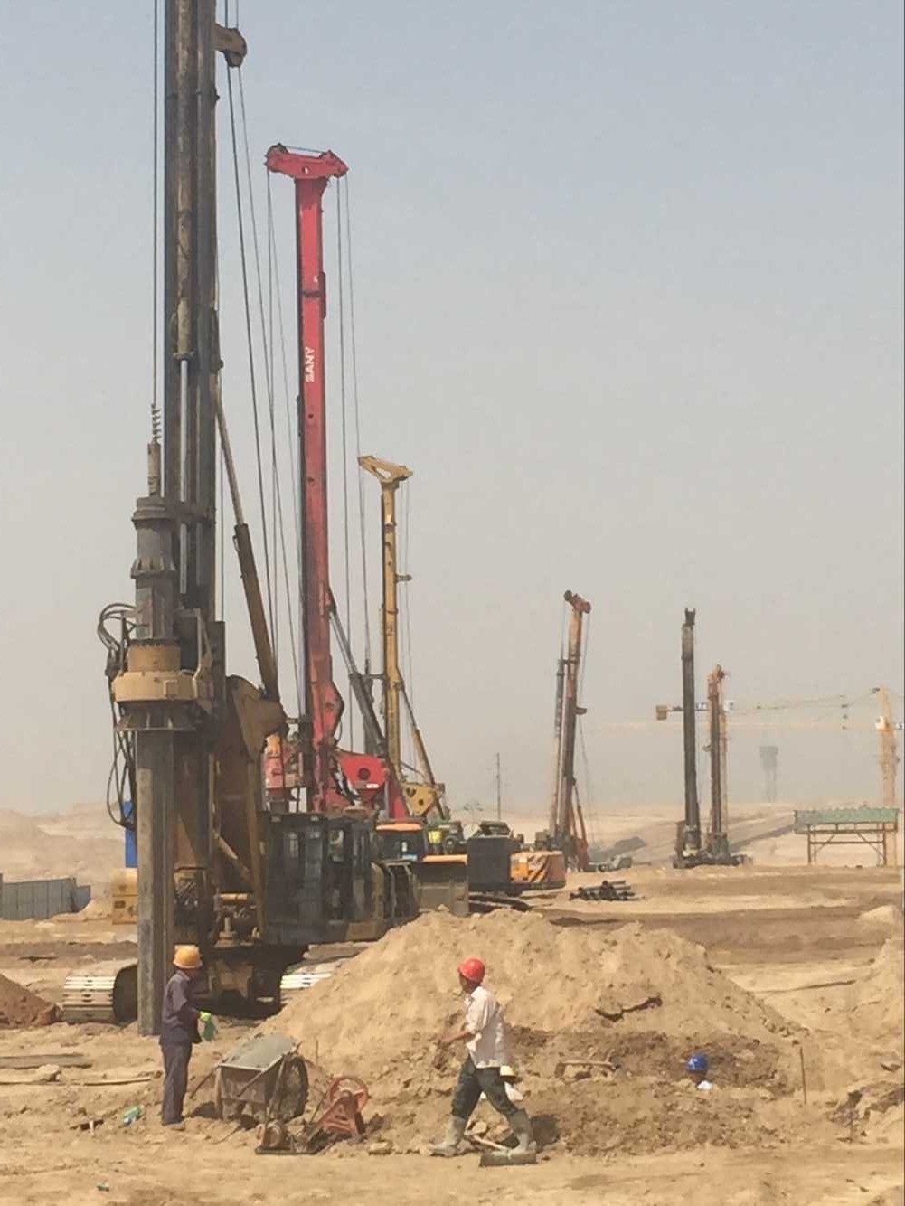 對于該工程來說,工程服務公司肩負著巨大責任同時也面臨著一系列新的挑戰。首先,“工期緊、任務重”是本工程的主基調。施工現場共有7臺旋挖鉆機參加施工,總樁數約500多根,長度50米,直徑900cm,計劃八月中旬完成整個樁基工程。這就考驗到隊伍的專業團隊合作能力,在高溫的考驗下,施工人員不僅要保證施工的速度,更要確保施工安全、高效的達到標準水平。除此之外,此次工程與以往不同之處是,灌注樁所用的所有鋼筋籠由工程服務公司外協施工隊伍自主加工制作、焊接、綁扎、加工等流程均由公司提供專業技術支持,從而保證鋼筋籠質量達到國家規范標準。這項工作不僅擴展了公司業務,加大了工程量,增加了更全面的施工經驗,也為公司提高了工效、節省了成本,激勵隊伍在新材料、新工藝、新技術上不斷積極探索,完成一項項更有難度的挑戰,在培養人才方面更加全面廣泛,在施工技術上更加專業可靠。