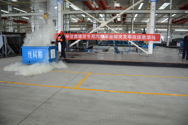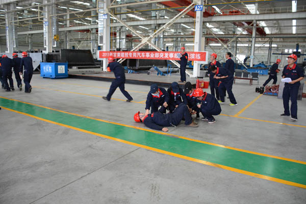 08月18日,甘肅建投裝備制造有限公司專用汽車事業部在蘭州新區專用車生產車間,開展了突發事故應急演練。此次演練共有71名員工參加,主要以日常生產過程中突發火災和突發工傷事故的應急演練。